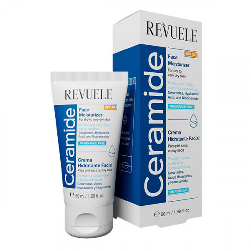 REVUELE CERAMIDE MOISTURIZING КРЕМ для сухої та дуже сухої шкіри.Завдяки насиченій нежирній текстурі зволожує та пом’якшує шкіру вже після першого застосування. Збагачений основними керамідами та гіалуроновою кислотою, він інтенсивно зволожує та живить шкіру протягом дня. Формула без парфумів підходить для чутливої шкіри.Для обличчя та тіла.Застосування: нанести на очищену шкіру масажними рухами до повного вбирання. Використовуйте його так часто, як це необхідно.Увага: можлива індивідуальна непереносимість будь-якого з інгредієнтів. Уникайте контакту з очима. У разі потрапляння в очі негайно промити водою.