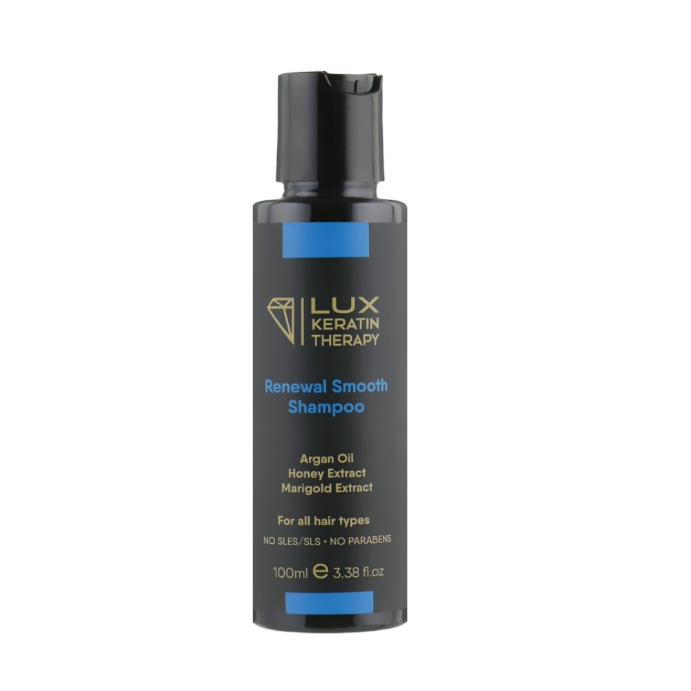 Шампунь безсульфатний Lux Keratin Renewal Smooth Shampoo.Створений для підтримання результату кератинового випрямлення впродовж тривалого терміну.Додатково розгладжує волосся після випрямлення, довше зберігає волосся рівним.Не містить сульфатів.У складі арганова олію, екстракт календули та меду.Об'єм: 100 мл.