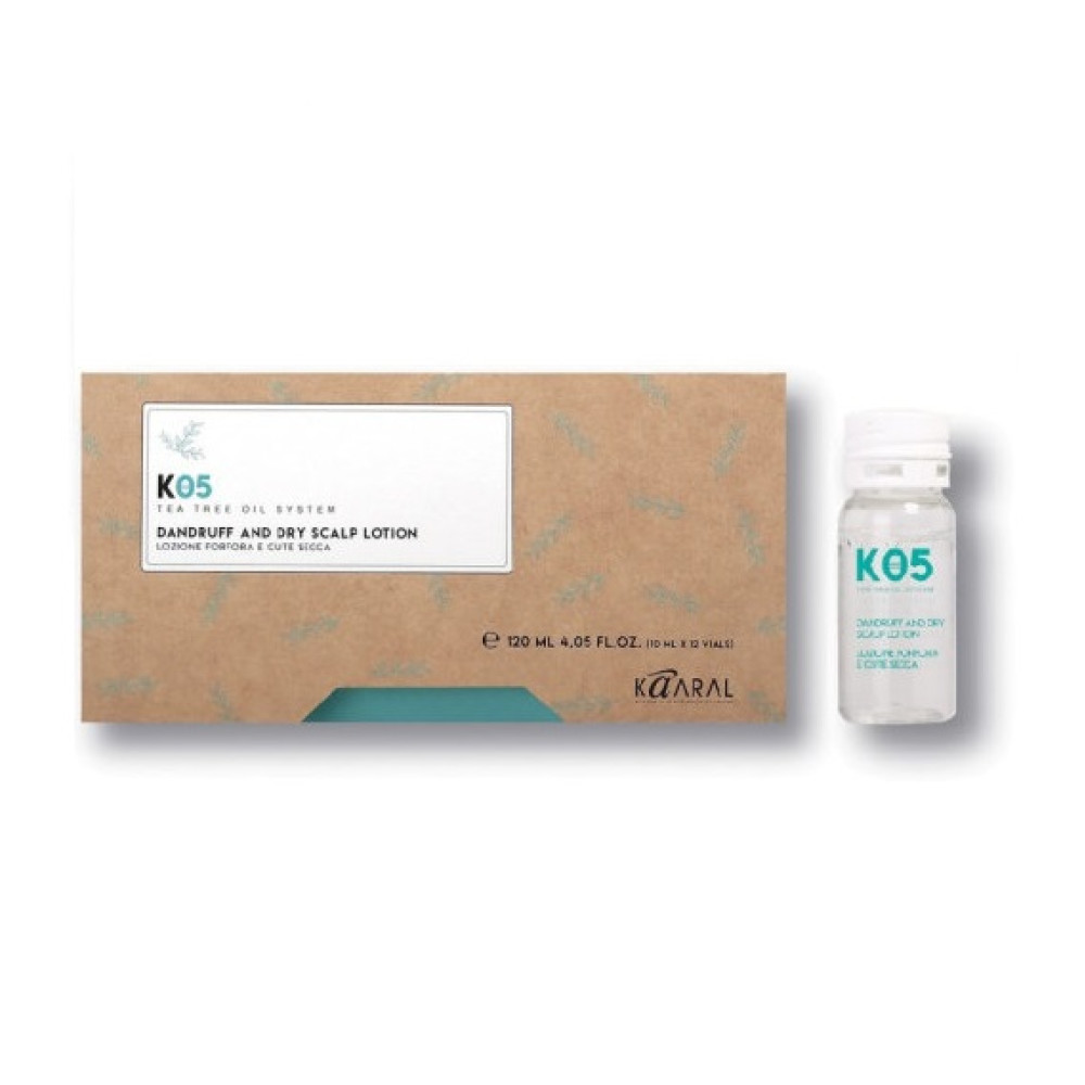 Лосьон проти сухої лупи Kaaral K05 Dandruff And Dry Sclap Lotion.Професійні трихологічні краплі на основі піроктон оламіну, екстракту кропиви, арніки, шипшини, стручкового перцю, олії чайного дерева.Краплі усувають лупу, свербіж та запалення шкіри голови, перешкоджають надлишковій жирності шкіри.Спосіб застосуваня:Нанести краплі масажними рухами на чисту шкіру голови по проборам, не змивати.Об'єм: 10 мл.