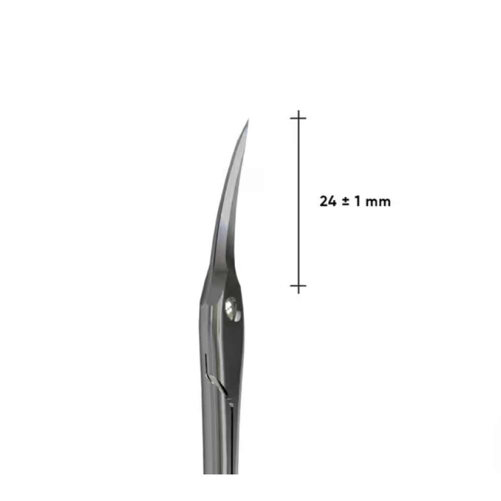 Ножиці для кутикули професійні Сталекс PRO Asymmetric UNIQ 30 SQ-30/4 — витончений інструмент для точного обрізання шкіри при манікюрі та педикюрі з подовженими прямими ручками та асиметричними кільцями для комфортного положення пальців. Тонкі звужені леза з вигнутими кінчиками та класичним радіусом вигину забезпечують акуратний та цілісний зріз навіть із тонкою прозорою шкірою, відкривають огляд робочої зони та дозволяють обробляти синуси без втоми руки. Ліве кільце розташоване нижче правого для більшої точності, глянцеві кромки відполіровані пастою ГОІ і не дряпають нігтьову пластину. Інструмент виготовлений із твердої медичної сталі з антикорозійним покриттям, довжина лез 24 мм, довжина інструменту 104/97 мм, підходить для правшів, має легкий плавний хід та може дезінфікуватися і стерилізуватися, що робить ножиці ідеальними для професійного салонного та домашнього використання.