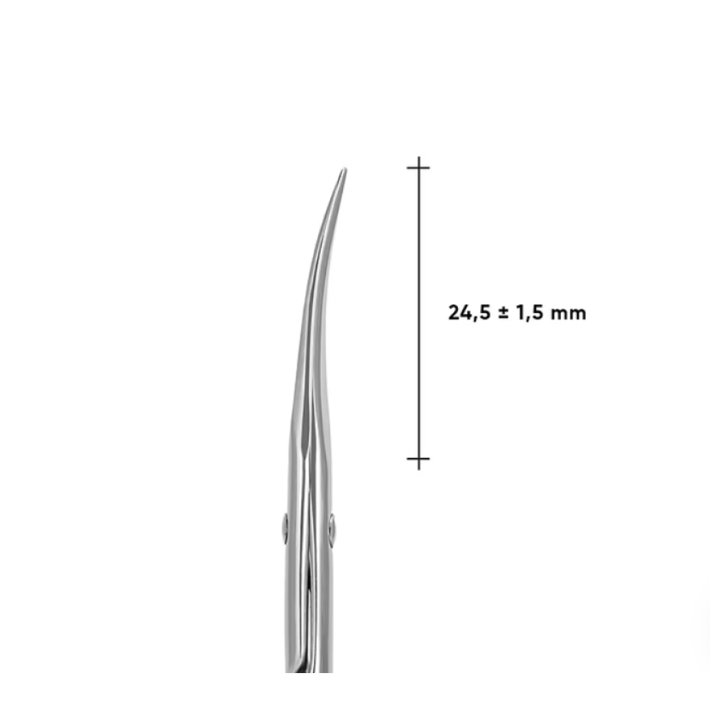 Ножиці професійні для кутикули Сталекс EXCLUSIVE 20 SX-20/2m — преміум-інструмент для акуратного та точного видалення кутикули під час манікюру та педикюру. Тонкі звужені леза з вигнутими кінчиками забезпечують рівний та чистий зріз навіть із ніжною прозорою шкірою, а класичний радіус вигину повторює лінію кутикули для максимально акуратного результату. Прямі подовжені ручки гарантують маневреність і комфорт роботи, відкривають огляд робочої зони та дозволяють обробляти синуси без втоми руки. Відполіровані кромки не дряпають нігтьову пластину, ножиці виготовлені з високоякісної медичної сталі з антикорозійним покриттям, підходять для правшів і можуть дезінфікуватися та стерилізуватися, що робить їх ідеальними для професійного салонного та домашнього використання.