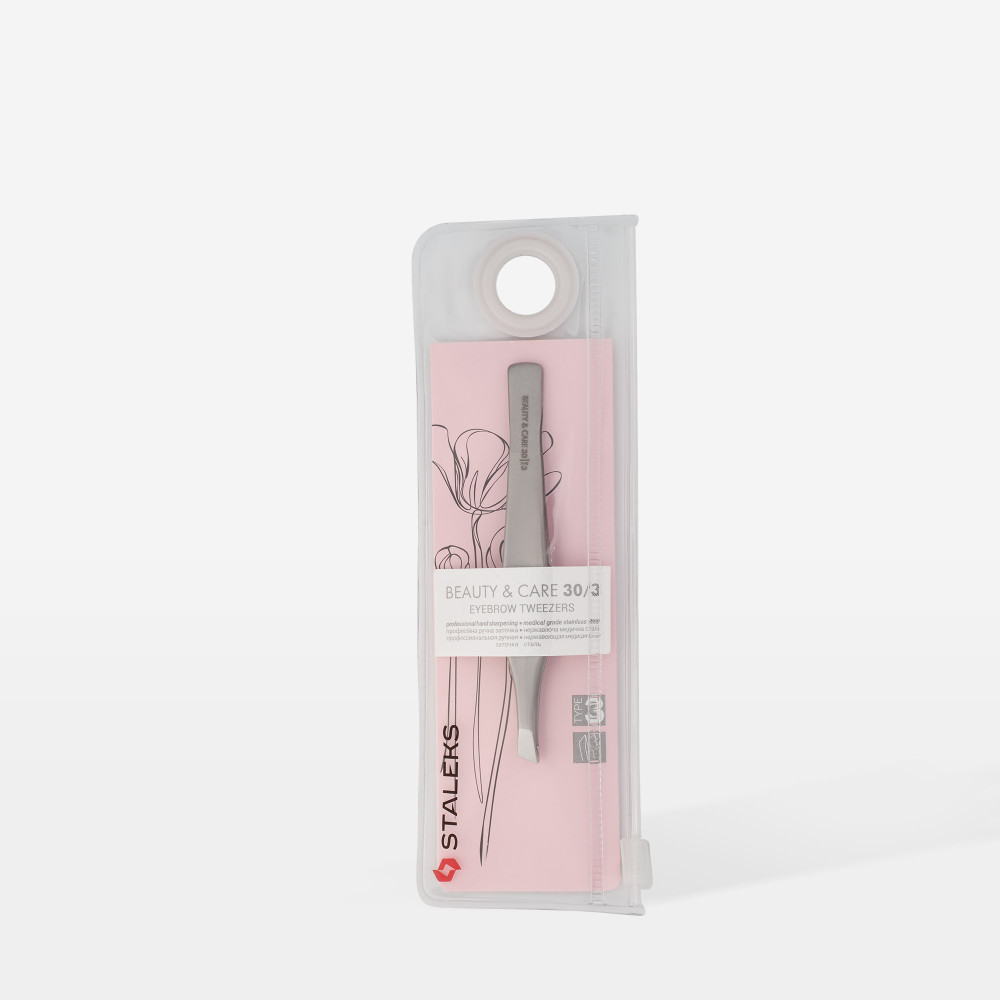 Пінцет для брів Staleks Beauty & Care 30 Type 3 TBC-30/3.широкі скошені кромкизручний при корекції широких, густих брівзахоплення волосся будь-якої товщини, завдяки тонким кромкамзниження ризику обламування волосся, за рахунок щільного змикання робочих площинзменшення почервоніння після процедури, завдяки полірованої зовнішній стороні робочої частини, яка не травмує шкірузручне розміщення інструмента в руці, завдяки зігнутим ергономічним ручкамручна заточка робочих кромокстильний лаконічний дизайнприємна на дотик матова поверхня