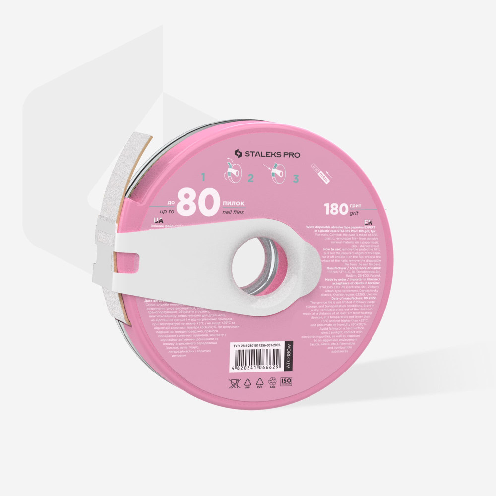 Змінний файл-стрічка papmAm білий EXPERT в пластиковій котушці STALEKS PRO 180 грит ATC-180w.Змінні файли papmAm одягаються на пилку-основу як чохолДовжина змінної стрічки papmAm 7 метрівМожливість самостійно відміряти довжину файлуБілий якісний абразив EXPERT White естетичний в роботіЛегке кріплення і зняття файлу papmAm з основиНадійна фіксаціяЧистий, без клею інструмент після роботиПластиковий футляр захищає абразивную стрічку від бруду та пошкодженьСпеціальна кліпса для зручного поділу абразивної стрічки papmAm