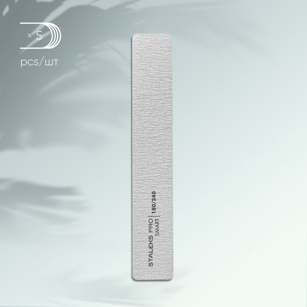 Пилка широка пряма мінеральна для нігтів Staleks Pro Smart, 180/240 грит (5шт.), набір NFB-31/2.призначені для використання в манікюрі і педикюріякісний абразив з двох сторінНЕ розмокає у водігнучка пластикова основаневеликий прошарок піни, який знижує тиск на нігтьову пластинурізні комбінації грітностейдві робочі поверхнів індивідуальній упаковці по 5 штШирока робоча поверхня, застосовується для нарощених форм, яка легко буде ковзати, спилюючи недоліки.Розмір 177 * 30 мм