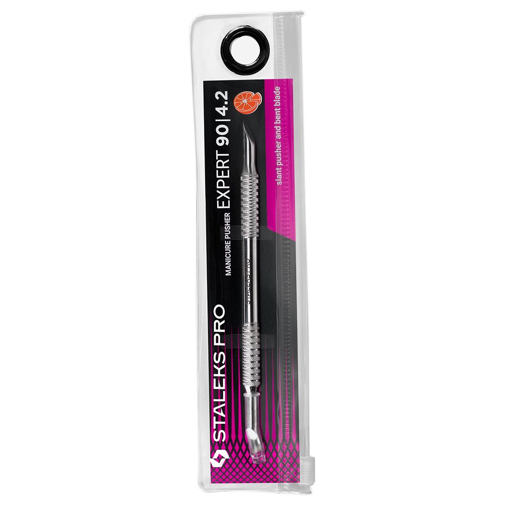 Металічна “апельсинова паличка” Staleks Pro Expert 90 Type 4.2 PE-90/4.2.робоча частина «пушер скошений» використовується для підняття та відсунення грубої кутикули, що сильно налипла, очищення вільного краю нігтя, видалення полімеризованих потоків гель-лакуробоча частина «відігнута лопасть» призначена для очищення нігтьової пластини від птеригіяпрофесійна ручна заточкарекомендовано для виконання манікюру та педикюрурифлена ручка покращує фіксацію інструменту в руці майстрадодаткова стійкість до корозії завдяки поліруванню пастою ГОІвисоколегована нержавіюча сталь 08Х18Н10 (AISI 304)