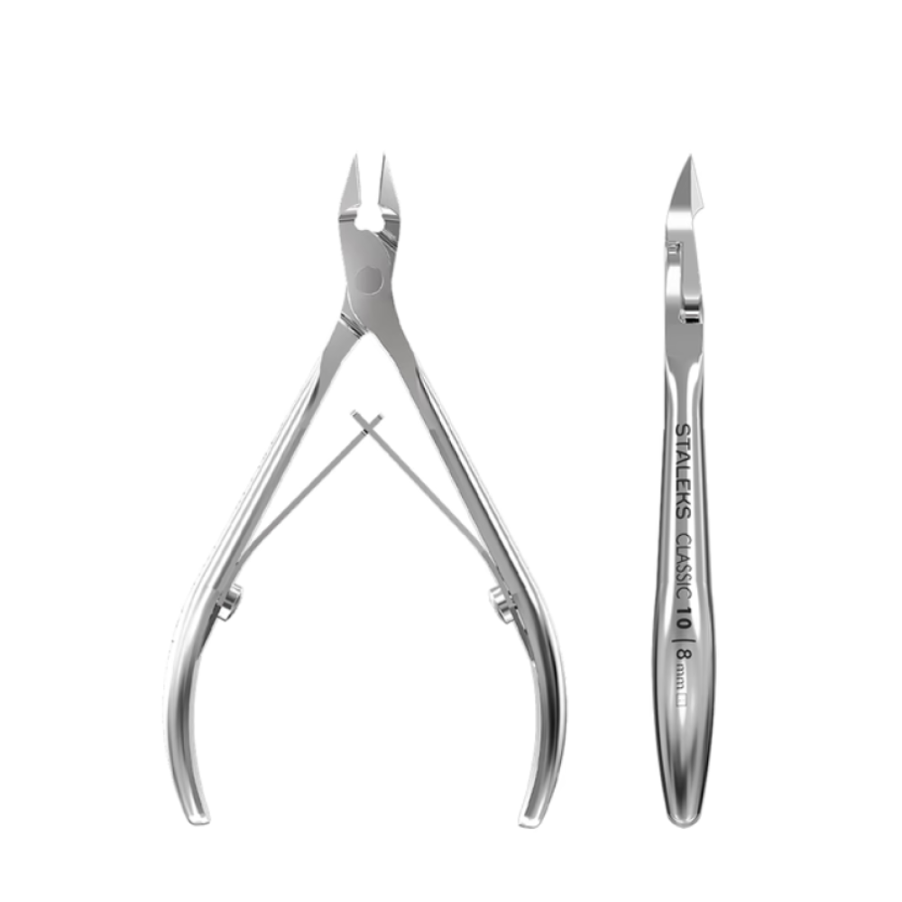 Професійні кусачки Сталекс NC-10-8 серії CLASSIC 10 призначені для акуратного та контрольованого видалення кутикули і шкіри навколо нігтів. Виготовлені з міцної нержавіючої сталі, стійкої до корозії та багаторазової дезінфекції. Ріжуча частина 8 мм з ручним заточуванням забезпечує чистий рівний зріз без ривків і травмування шкіри. Ергономічна форма ручок і плавний хід гарантують комфортну роботу під час манікюру та педикюру. Підходять для професійного і домашнього використання.