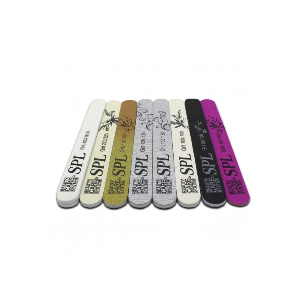 Комплект пилок для нігтів SPl 9998.У цьому наборі вісім мінеральних пилок. Оскільки всі вони різної абразивності — від 80 до 3000 гріт, їх можна використовувати для догляду за натуральними та штучними нігтями. Жорсткі (їхня грітність до 180) більше підходять для нарощених, середні (від 200) підійдуть для натуральних нігтьових пластин, а пилки від 900 гріт стануть чудовими полірувальниками та шліфувальниками.