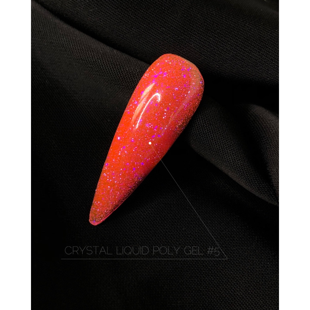 CROOZ LIQUID POLYGEL CRYSTAL - чарівна колекція рідких полігелів із світловідбиваючим ефектом та дрібними частинками фольги. Кожен відтінок у цій лінійці надзвичайно сяючий, дозволяючи створити святкові, чарівні та дивовижно мерехтливі дизайни манікюру. Цей матеріал також економить ваш час завдяки поєднанню кількох функцій: укріплення, ремонт, моделювання, кольорове покриття та дизайн. Чи ж не чарівна паличка для вашого арсеналу? Особливості: - Середня консистенція, що не розтікається, пластична та водночас жорстка.- Гель має властивість самовирівнюватися, що дозволяє легко створити ідеальну форму нігтя та рівномірну поверхню.- Після полімеризації утворює жорсткий каркас, що не викликає усадки та міцно утримує арку, забезпечуючи стійкість манікюру.- Текстура гелю допомагає зміцнити та захистити нігті від пошкоджень, запобігаючи їх ламкості та відшаруванню.- Продукт не викликає печіння у лампі та оптимальний для роботи у техніці без опилу.- Висока зносостійкість забезпечує стійкий блиск та яскравість протягом тривалого носіння.- Зручний пензлик для комфортного та рівномірного нанесення.
