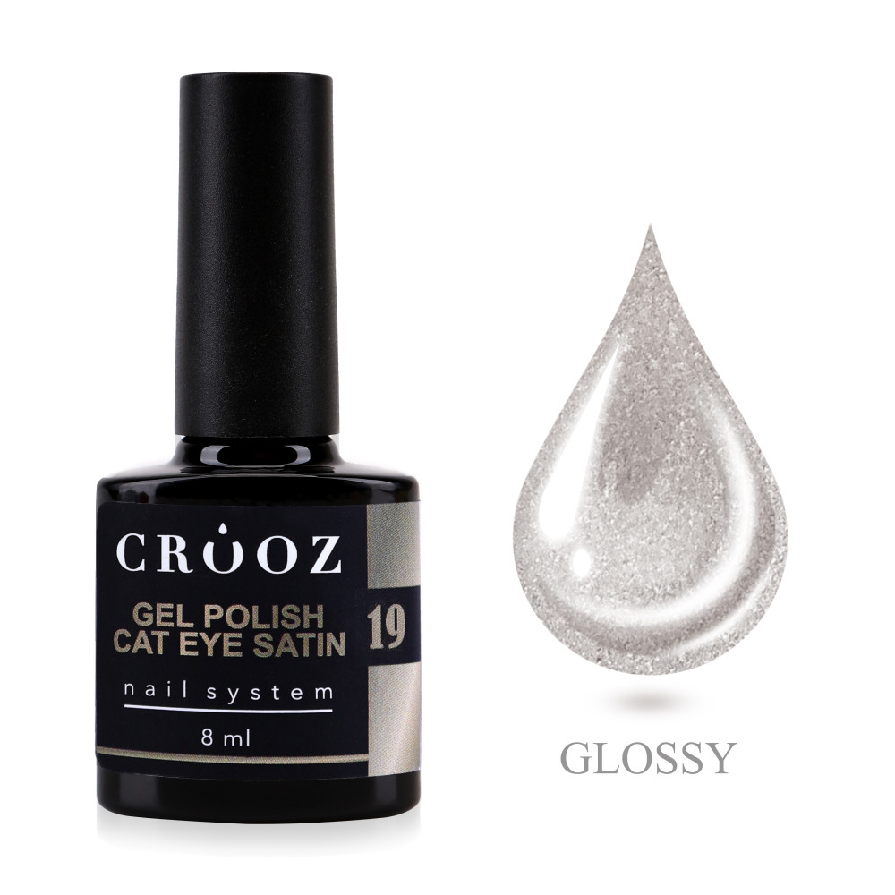 Гель-лак Crooz Cat Satin №19 у витонченому відтінку Soft Taupe із сатиновим ефектом «Котяче око» створює елегантний і універсальний манікюр із м’яким шовковистим переливом та глибокою грою світла, рівномірно наноситься без смуг і просвітів, має щільну пігментацію та комфортну консистенцію, що легко самовирівнюється і не розтікається, забезпечує насичений колір і виразний ефект уже з 1–2 шарів, швидко полімеризується в LED/UV-лампі, зберігає блиск і стійкість до 3–4 тижнів без сколів та відшарувань, підходить для професійного та домашнього використання.