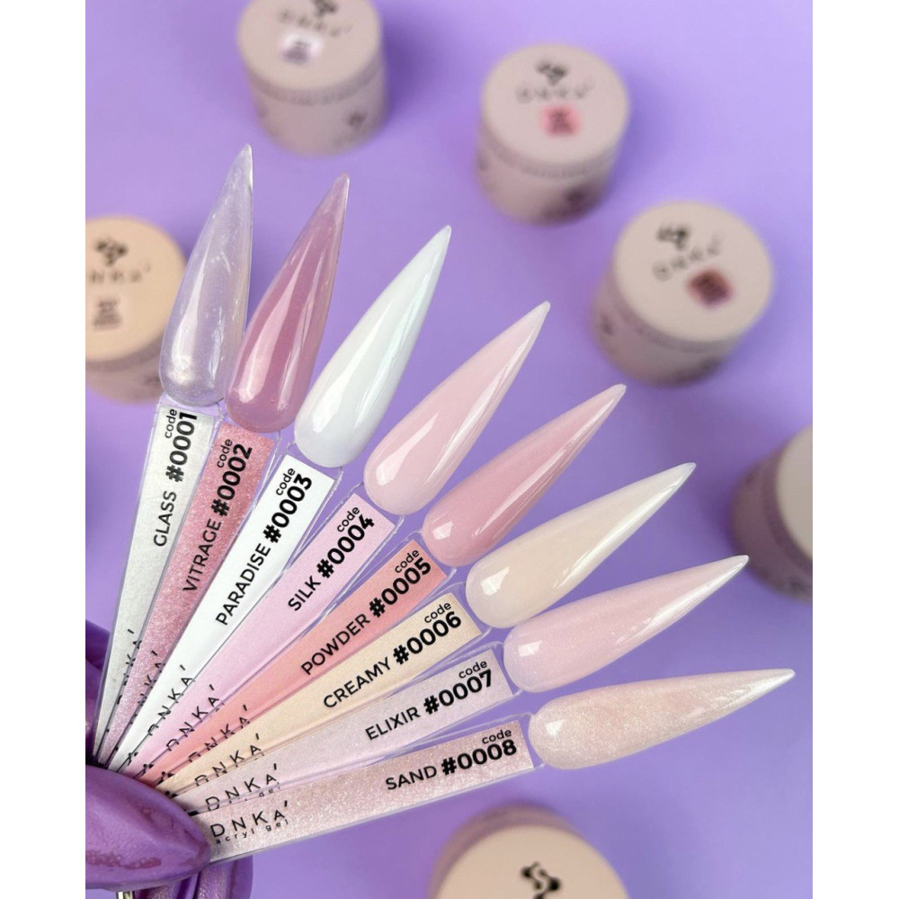 Акрил-гель DNKa Acryl Gel 30 мл.стійкий до механічних дій;не токсичний;не кислотний;не має різкого запаху;м'якої консистенції;легко обробляється пилкою чи фрезоюшвидка полімеризація;не пече у лампі.