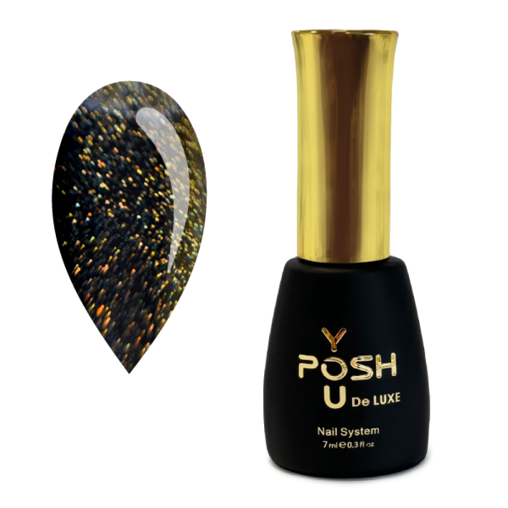 Топ для гель-лаку без липкого шару You POSH Top Shimmer Gold з золотистим шимером.  You POSH Top Shimmer Gold - топ для гель-лаку без липкого шару, текстура якого доповнена золотистим шимером. Вирізняється оптимальною для швидкого нанесення консистенцією. Завдяки наявності сяючого шимеру надає манікюрному дизайну шикарний блиск. Має необхідну міцність для захисту від пошкоджень і подряпин, а також стійкий глянець.  Рекомендації щодо застосування: полімеризація становить 2 хвилини.  Дуже важливо дати топу повністю охолонути.  Об/'єм 7 мл.