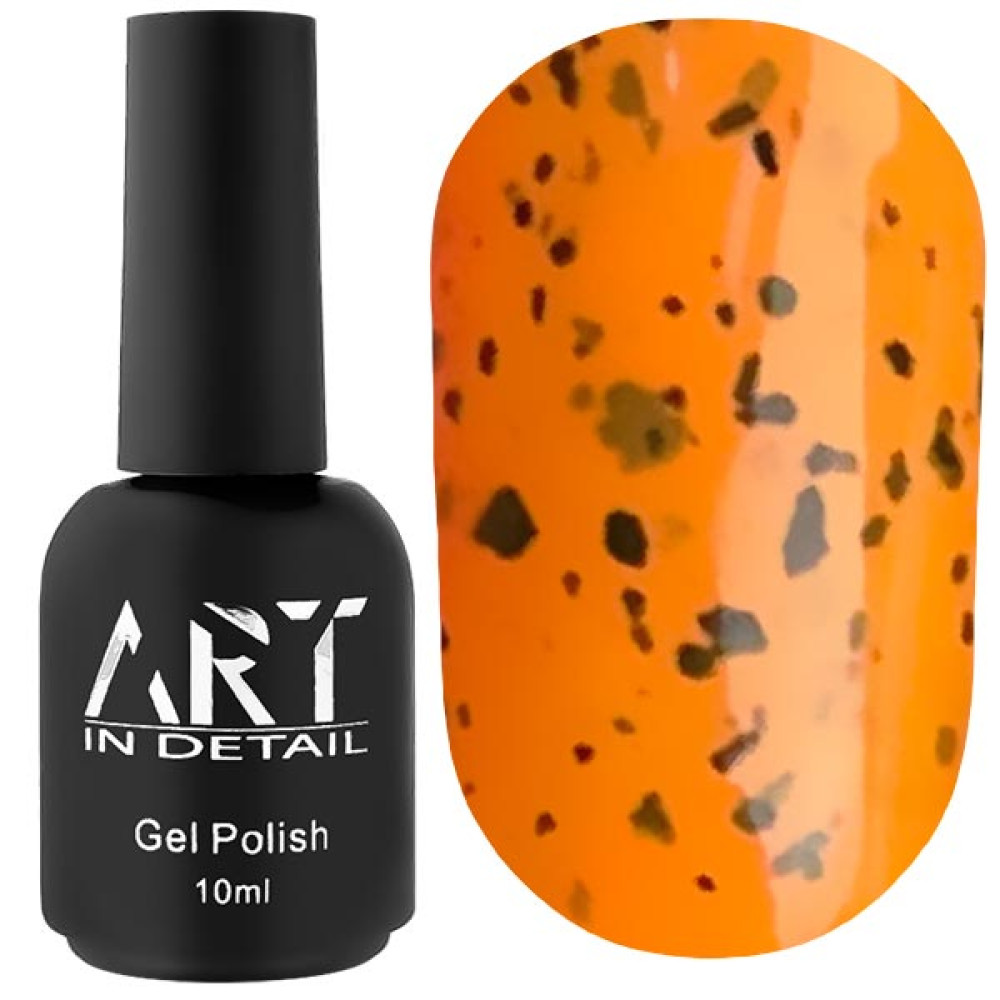 Гель-лак із чорними пластівцями ART Summer Fresh.Яскрава палітра відтінків гель-лаків, доповнених чорними пластівцями-вкрапленнями різного розміру.Об'єм: 10 мл.
