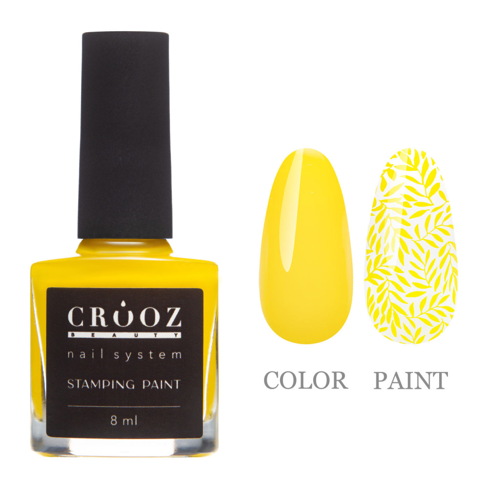 CROOZ STAMPING PAINT - це колекція лаків для стемпінгу, яка складається з 9 різноманітних відтінків. Вони гарантують бездоганний манікюр незалежно від довжини і форми нігтів та будуть надійними помічниками протягом тривалого часу. Характеристики:- Має середню консистенцію, що забезпечує легкість роботи та рівномірне нанесення по нігтьовій пластині.- Оптимальний час висихання на повітрі, зберігаючи чіткі контури малюнка.- Насичені кольорові пігменти забезпечують яскравість малюнка.- Рівномірно лягає на трафарет і добре фіксується на силіконовому штампі.- Легко переносить малюнки, орнаменти та візерунки різної складності.- Має довготривалу стійкість на нігтях і не тьмяніє протягом тривалого носіння.- Не тріскається та не склеюється після висихання.- Легко знімається засобом для зняття лаку.