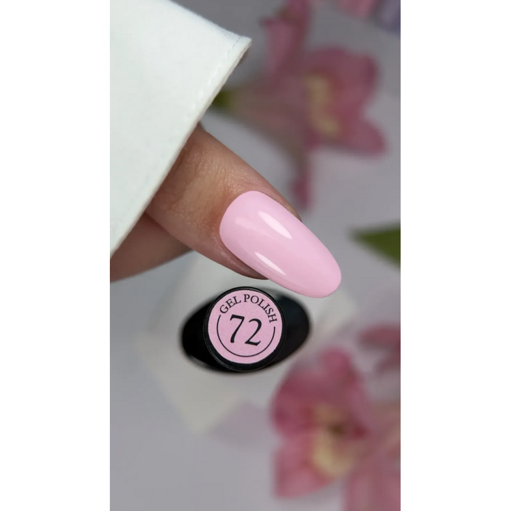 Crooz Гель-лак №72 — ніжний молочно-полуничний відтінок, що поєднує м’яку молочну базу з делікатним полуничним підтоном, створюючи свіжий, жіночний та акуратний манікюр; колір виглядає природно й елегантно, додає образу легкості та доглянутого вигляду, ідеально підходить для нюдових і повсякденних дизайнів; формула має консистенцію середньої щільності, рівномірно наноситься без розтікання, добре самовирівнюється та забезпечує чисте покриття без смуг і пропусків; завдяки високій пігментації перекривається у 1–2 тонкі шари, зберігаючи ніжність і чистоту відтінку; покриття стійке у носінні, довго зберігає глянцевий блиск і не тьмяніє; зручний пензлик дозволяє точно працювати біля кутикули та бічних валиків, забезпечуючи акуратний і професійний результат.
