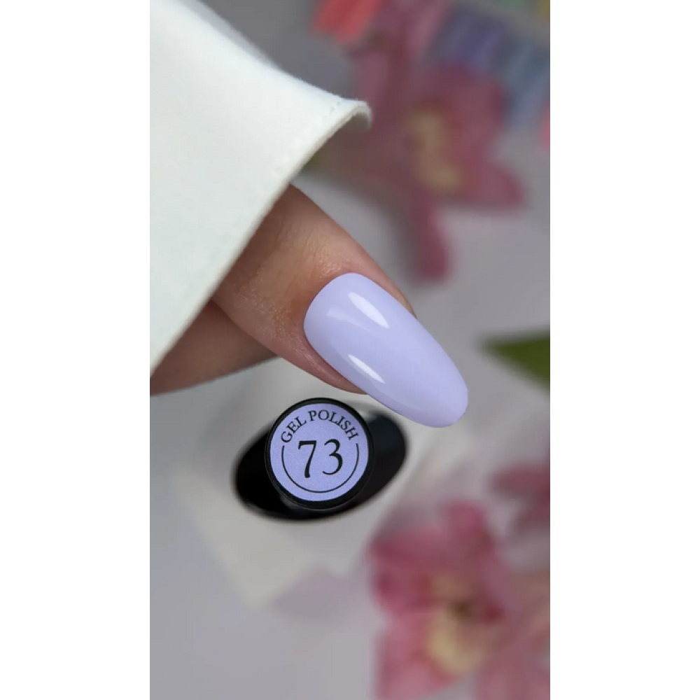 Crooz Гель-лак №73 — ніжний фіалково-лавандовий відтінок, що поєднує м’якість лаванди та легку глибину фіалки, створюючи витончений, жіночний і гармонійний манікюр; колір виглядає делікатно та стильно, додає образу свіжості й легкості, добре підходить як для повсякденного носіння, так і для більш романтичних або акцентних дизайнів; формула має консистенцію середньої щільності, рівномірно наноситься без розтікання, добре самовирівнюється та забезпечує чисте покриття без смуг і пропусків; завдяки високій пігментації
