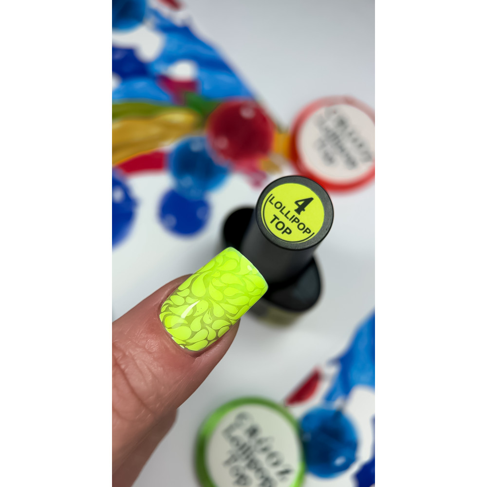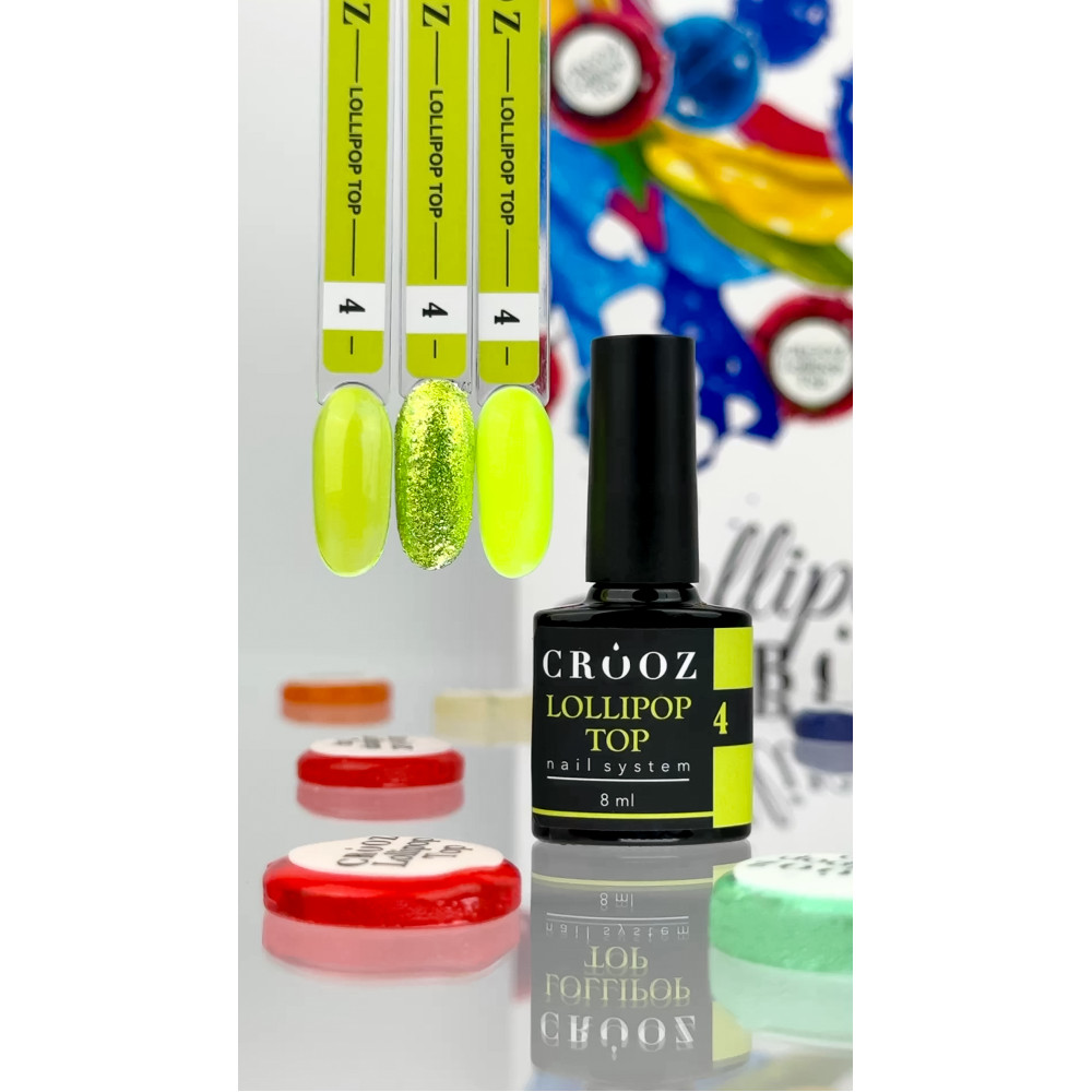 CROOZ LOLLIPOP TOP - це не просто колекція вітражних закріплювачів для манікюру, а справжній вибух солодких фантазій, що перетворює нігті на яскраві карамельні льодяники. Кожен відтінок нагадує апетитну цукерку, огортаючи нігтьову пластину напівпрозорим, насиченим шаром, що переливається під світлом. Гладкий і блискучий фініш створює ефект топленої карамелі, наче нігті вкриті ароматною, щойно розтопленою глазур’ю. Легкість, грайливість та вітражний блиск роблять ці топи ідеальним вибором, для смачного та спокусливого дизайну. Який льодяник ти обереш сьогодні?Особливості:- Легка консистенція не розтікається та рівномірно самовирівнюється, забезпечуючи комфортне нанесення.- Вітражний ефект дозволяє створити ефект обʼєму і глибини - дизайн нігтів виглядає ніби під кольоровим склом.- Висока пігментація гарантує насичений колір і стійкість без вицвітання чи помутніння.- Не містить липкого шару, що робить його ще зручнішим у використанні.- Додає манікюру ефектний глянцевий фініш без зайвих зусиль.- Підходить для створення як однотонного покриття, так і яскравих nail-акцентів, акварельного розпису чи різноманітних технік.- Час полімеризації залежить від товщини шару: тонкий шар - 90-120 секунд, вирівнюючий - 120-180 секунд.- Ідеально підходить як для манікюру, так і для педикюру, оскільки легка формула не обтяжує нігтьову пластину.