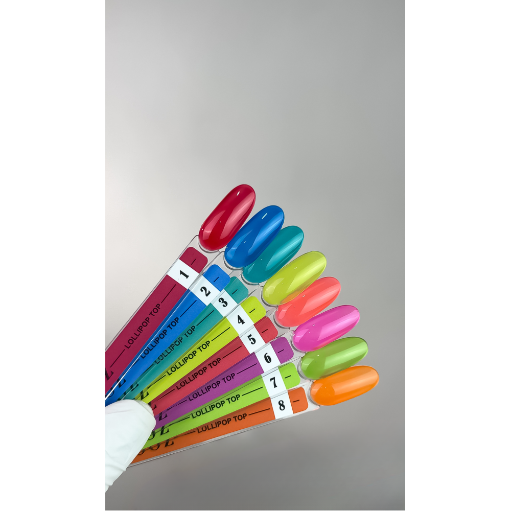 CROOZ LOLLIPOP TOP - це не просто колекція вітражних закріплювачів для манікюру, а справжній вибух солодких фантазій, що перетворює нігті на яскраві карамельні льодяники. Кожен відтінок нагадує апетитну цукерку, огортаючи нігтьову пластину напівпрозорим, насиченим шаром, що переливається під світлом. Гладкий і блискучий фініш створює ефект топленої карамелі, наче нігті вкриті ароматною, щойно розтопленою глазур’ю. Легкість, грайливість та вітражний блиск роблять ці топи ідеальним вибором, для смачного та спокусливого дизайну. Який льодяник ти обереш сьогодні?Особливості:- Легка консистенція не розтікається та рівномірно самовирівнюється, забезпечуючи комфортне нанесення.- Вітражний ефект дозволяє створити ефект обʼєму і глибини - дизайн нігтів виглядає ніби під кольоровим склом.- Висока пігментація гарантує насичений колір і стійкість без вицвітання чи помутніння.- Не містить липкого шару, що робить його ще зручнішим у використанні.- Додає манікюру ефектний глянцевий фініш без зайвих зусиль.- Підходить для створення як однотонного покриття, так і яскравих nail-акцентів, акварельного розпису чи різноманітних технік.- Час полімеризації залежить від товщини шару: тонкий шар - 90-120 секунд, вирівнюючий - 120-180 секунд.- Ідеально підходить як для манікюру, так і для педикюру, оскільки легка формула не обтяжує нігтьову пластину.