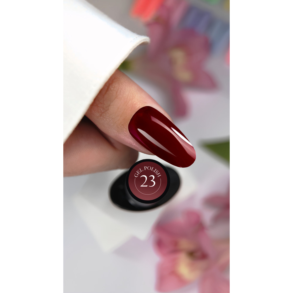 Насичений бордовий гель-лак Crooz №23 об/'ємом 8 мл дарує нігтям глибокий, насичений колір з елегантним блиском, легко наноситься та швидко полімеризується під UV/LED лампою, тримається до 21 дня, не містить шкідливих речовин і підходить для професійного та домашнього манікюру, створюючи стильний, доглянутий та бездоганний результат, який підкреслює розкіш і індивідуальність ваших рук.