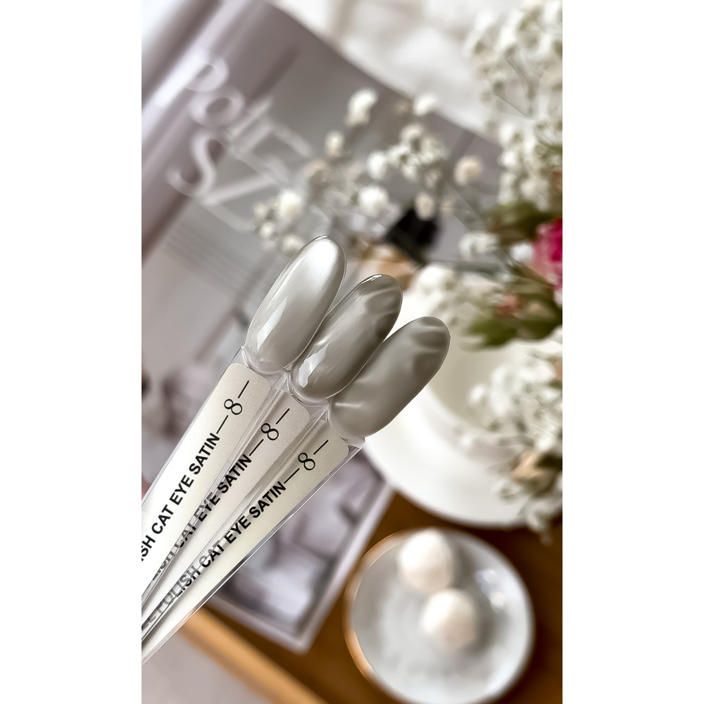 Гель-лак Crooz Cat Satin №08 у ніжному відтінку Vanilla Satin із сатиновим ефектом «Котяче око» створює стильний і витончений манікюр із м’яким переливом та глибокою грою світла, рівномірно наноситься без смуг і просвітів, має щільну пігментацію та комфортну консистенцію, яка легко самовирівнюється та не розтікається, забезпечує насичений колір і виразний сатиновий ефект уже з 1–2 шарів, швидко полімеризується в LED/UV-лампі, зберігає блиск і стійкість до 3–4 тижнів без сколів та відшарувань, підходить для професійного та домашнього використання.