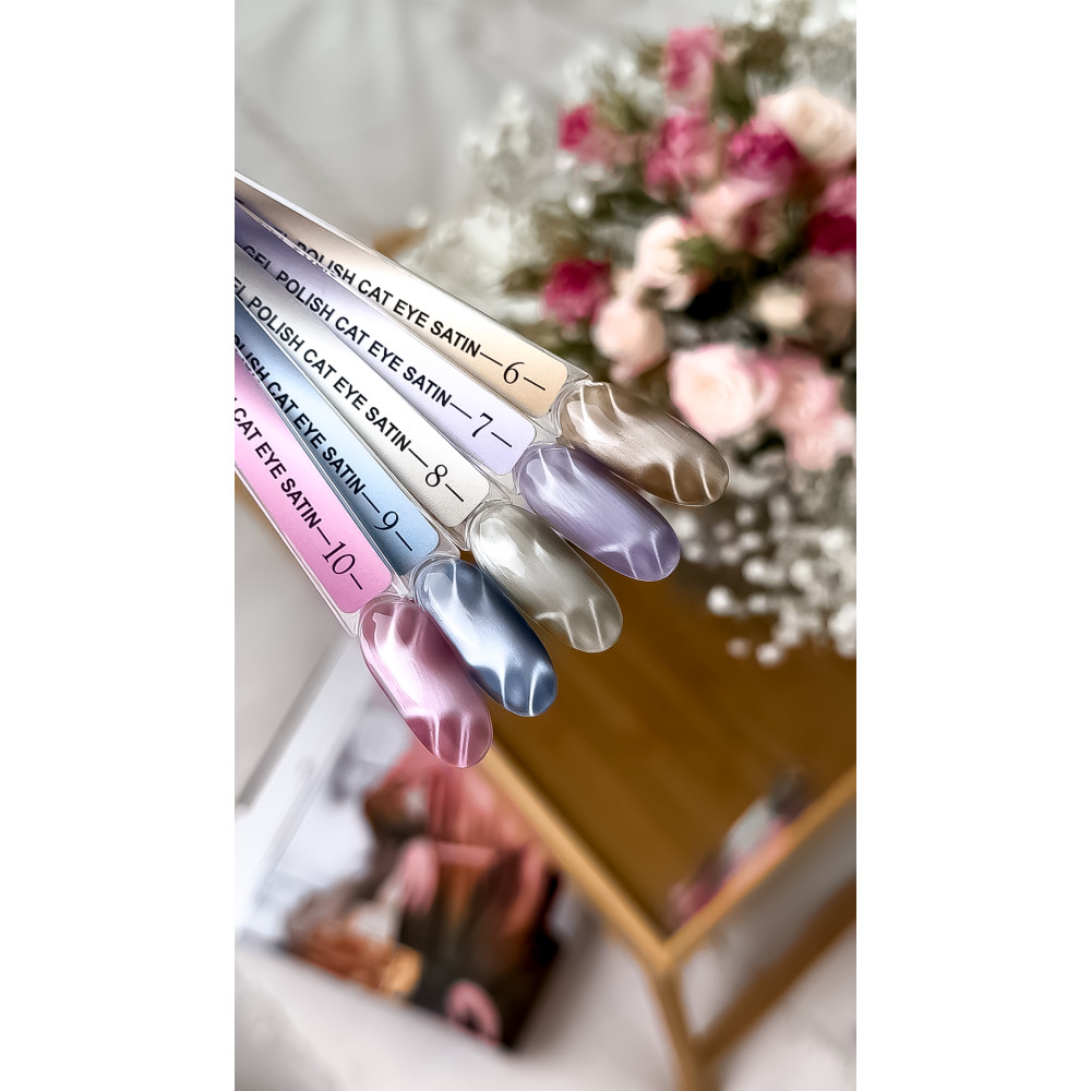 Гель-лак Crooz Cat Satin №09 у насиченому відтінку Steel Blue із сатиновим ефектом «Котяче око» створює стильний і сучасний манікюр із м’яким переливом та глибокою грою світла, рівномірно наноситься без смуг і просвітів, має щільну пігментацію та комфортну консистенцію, яка легко самовирівнюється та не розтікається, забезпечує насичений колір і виразний сатиновий ефект уже з 1–2 шарів, швидко полімеризується в LED/UV-лампі, зберігає блиск і стійкість до 3–4 тижнів без сколів та відшарувань, підходить для професійного та домашнього використання.
