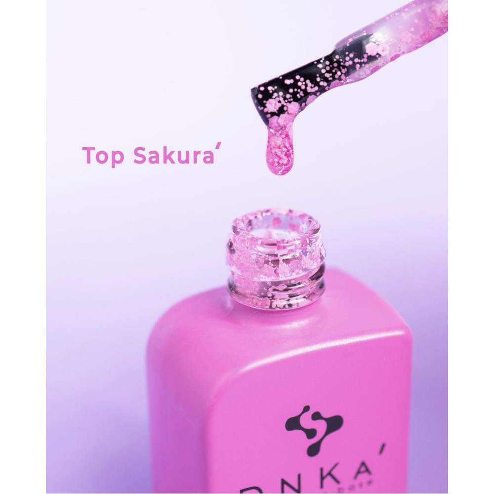 Топ для нігтів із пластівцями без липкого шару DNKa Sakura Top.глянсове покриття;середня консистенція;без липкого шару;не жовтіє;швидко самовирівнюється;Об'єм: 12 мл.