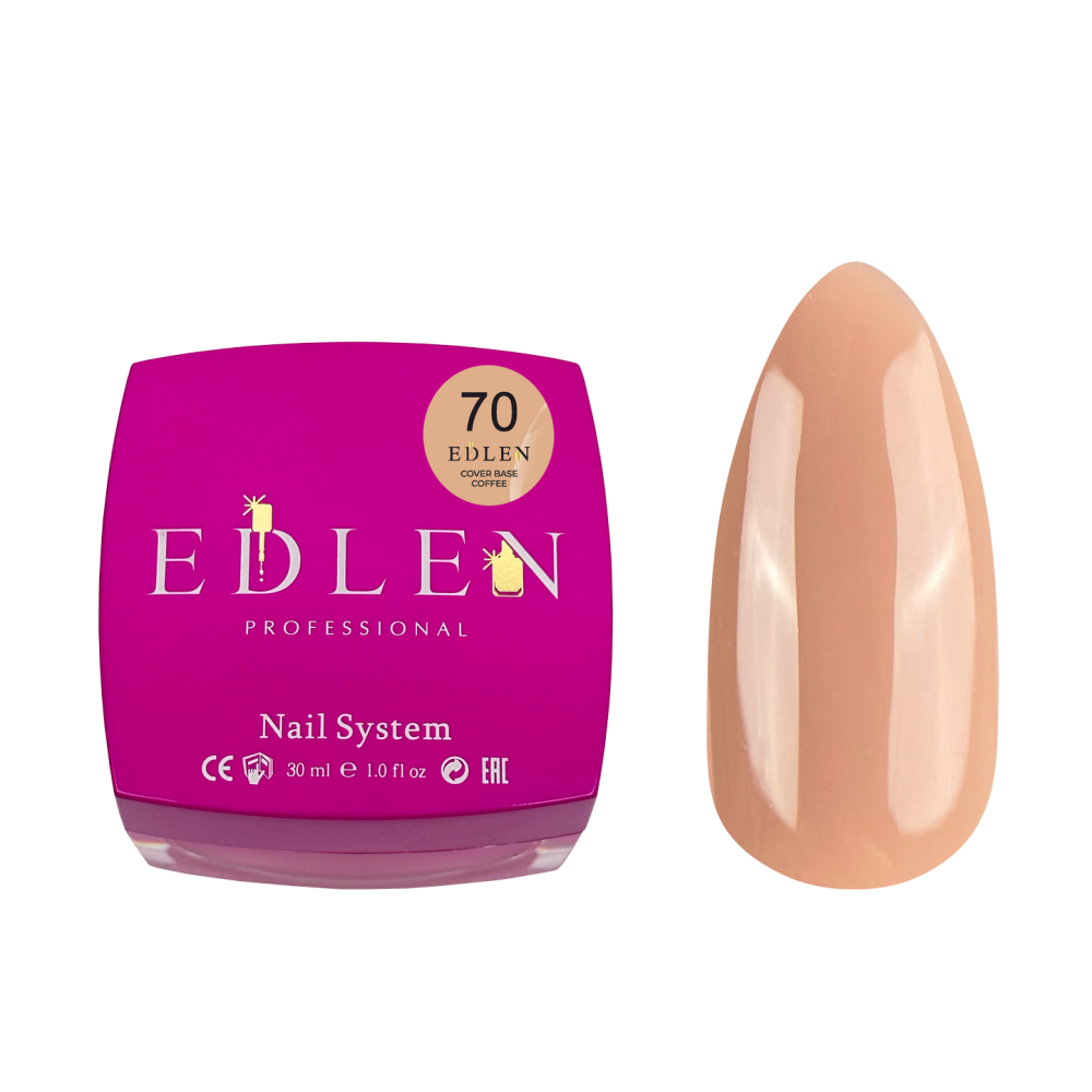 Cover base Edlen  -  бази зручної, маслянистої консистенції, чудово самовирівнюються та дуже комфортні в роботі. Завдяки ідеальній концентрації пігменту в базах Edlen можна гарно і швидко перекривати натуральну нігтьову пластину. Cover base Edlen Professional – це високоякісні бази з пігментом, які економлять час процедури кожному майстру нігтьової естетики.Характеристики Cover base Edlen:1. Середня, зручна консистенція2. Містить чудові самовирівнюючі властивості3. Щільно лягає в один, вирівнюючий шар4. Висока адгезивність5. Обов’язково рекомендуємо наносити тонкий шар перед Cover base із Rubber/Silk base Edlen 6. Низько-кислотна Ph 6,8