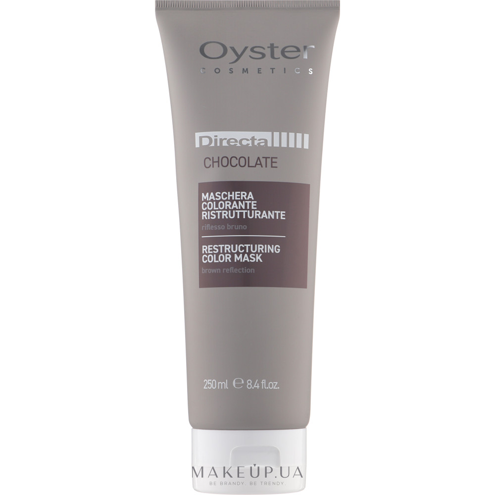 Тонуюча доглядова маска для волосся Oyster Directa.Відновлююча тонуюча маска у відтінку Шоколад з пігментами прямої дії не тільки тонує волосся, а й надає йому м'якості, блиску та еластичності.У складі імбир, оливкова олія, та баттер какао.Спосіб застосування:На чисте, підсушене рушником волосся нанести та розподілити маску.Залишити на 10-30 хв (залежно від бажаного результату) та змити теплою водою.Об'єм: 250 мл.
