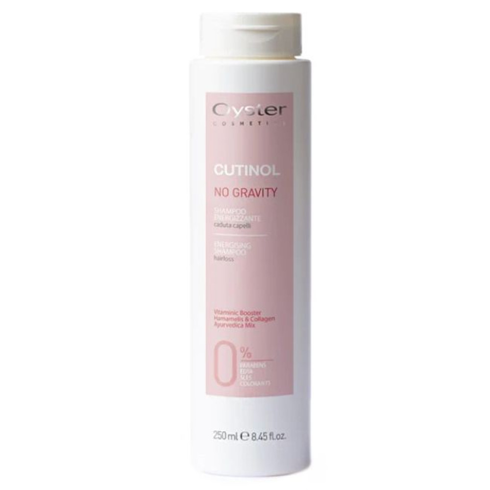 Oyster Cutinol No Gravity Energising Shampoo 250 мл – шампунь проти випадання волосся. Ослаблене волосся часто піддається випаданню. І щоб вирішити цю проблему, бренд Oyster розробив спеціальний шампунь. Активні компоненти стимулюють приплив крові до волосяних фолікулів та запобігають надмірному випаданню волосся. Шампунь зміцнює та відновлює волоски завдяки протеїнам пшениці у складі, а оливкова олія живить та зволожує.СПОСІБ ЗАСТОСУВАННЯНевелику кількість шампуню нанесіть на вологе волосся і розподіліть масажними рухами. Змийте водою, протріть волосся рушником і повторно нанесіть шампунь. Залишіть на 2–3 хвилини та змийте водою.