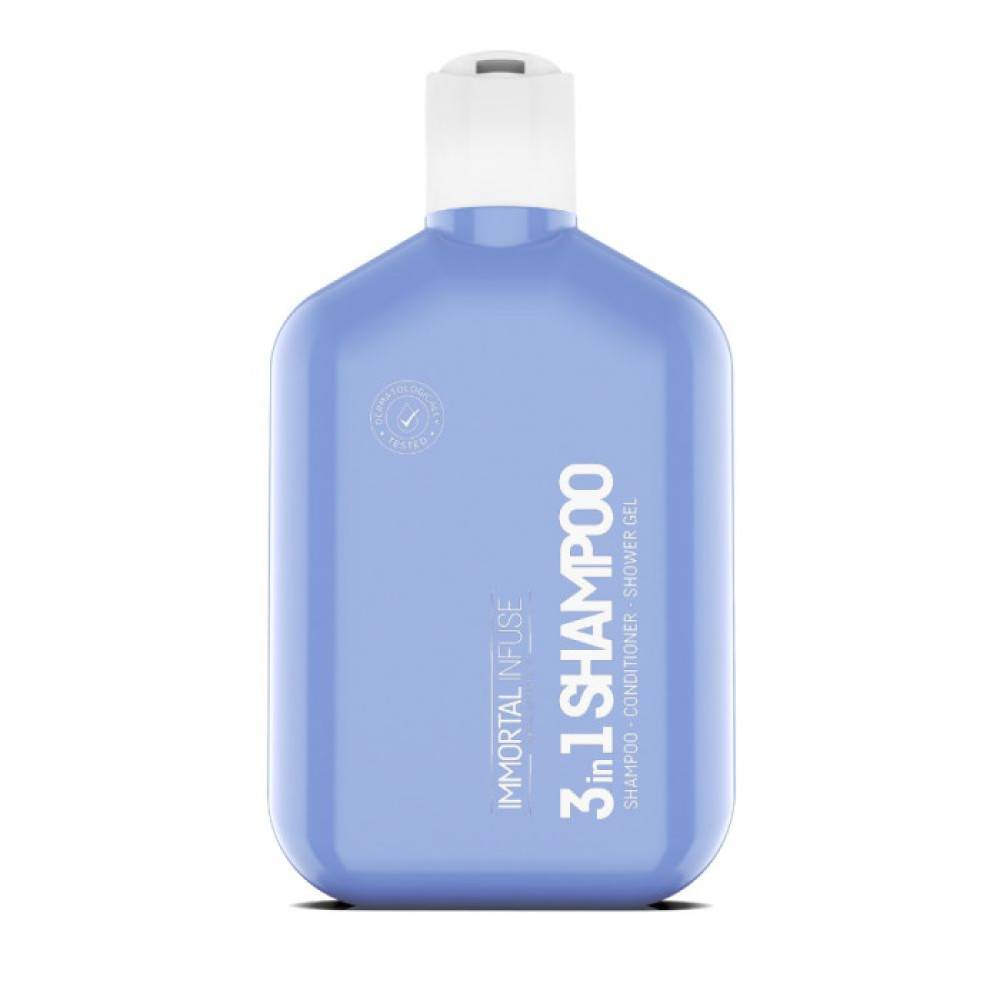 Immortal Infuse Men’s Daily Care 3 in 1 — це універсальний засіб, який чудово поєднує в собі відразу три продукти: шампунь із зволожуючим ефектом, кондиціонер для живлення пошкодженого волосся та гель для душу, який глибоко очищає. Такий дбайливий щоденний догляд обов’язково сподобається кожному чоловікові!Засіб не містить спирту та парабенів, тому не спричиняє подразнення та підходить для всіх типів шкіри і волосся. М’яка формула косметичного продукту збагачена корисними рослинними екстрактами.Шампунь Immortal Infuse Men’s Daily Care якісно очищає волосся, а кондиціонер відновлює оптимальний гідробаланс, живить, пом’якшує та не обтяжує. Водночас гель для душу добре доглядає за шкірою тіла, делікатно видаляючи всі забруднення.