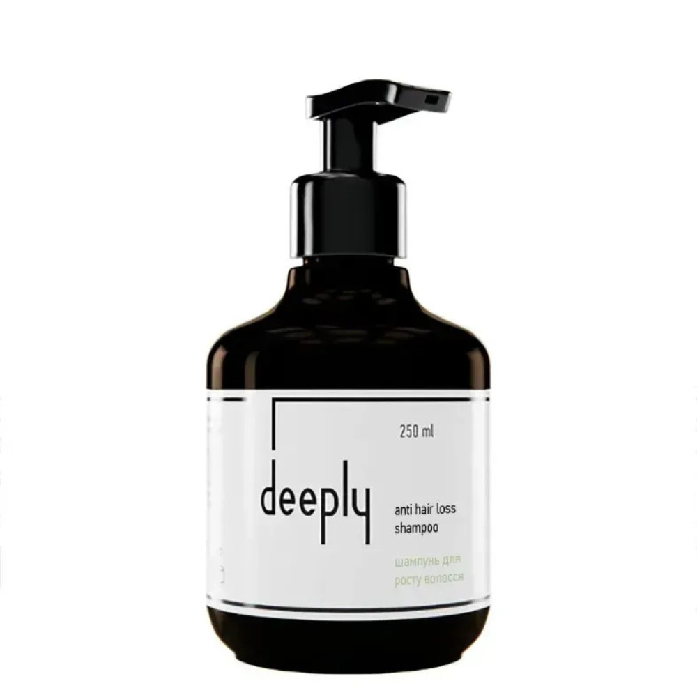 DEEPLY Anti Hair Loss — шампунь для росту волосся, розроблений для зміцнення коренів, зменшення випадіння та стимуляції активного росту волосся. Формула м’яко очищує шкіру голови, покращує мікроциркуляцію та насичує волосяні фолікули поживними компонентами, допомагаючи відновити густоту, силу та здоровий вигляд волосся. Шампунь підходить для регулярного використання, робить волосся більш щільним, еластичним і блискучим, не обтяжує та зберігає природний баланс шкіри голови, що робить його ідеальним вибором для комплексного догляду проти випадіння волосся.