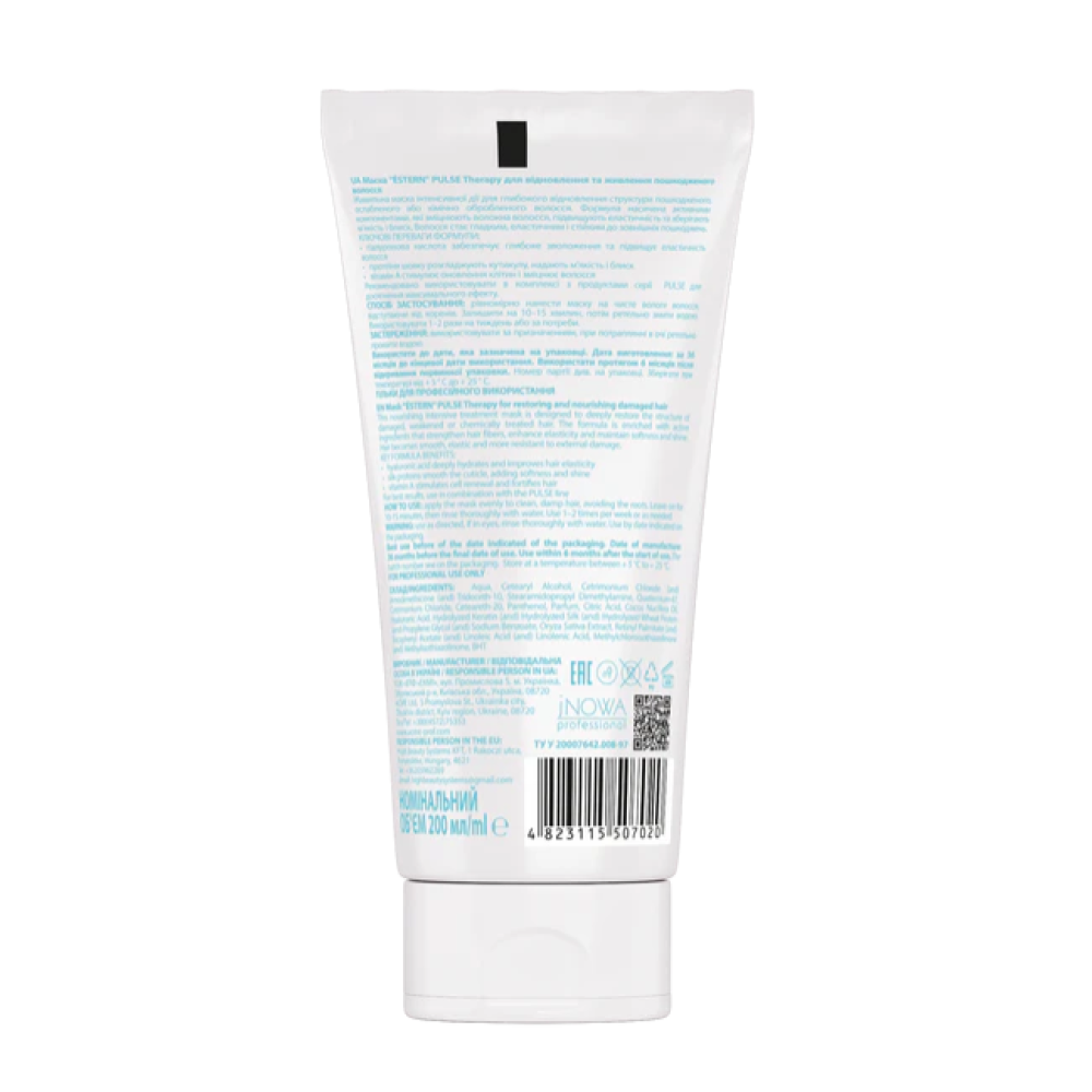 Estern Pulse Therapy Mask — живильна маска інтенсивної дії для глибокого відновлення пошкодженого, ослабленого чи хімічно обробленого волосся. Формула насичена активними компонентами, що зміцнюють волокна волосся, підвищують еластичність і допомагають зберегти м’якість та блиск без обтяження.Гіалуронова кислота забезпечує глибоке зволоження, протеїни шовку згладжують кутикулу та надають волоссю сяйво, а вітамін А стимулює клітинне оновлення й зміцнює структуру волосся.При регулярному застосуванні маска робить волосся густішим, гладким і більш стійким до зовнішніх пошкоджень. Найкращий результат досягається у комплексі з засобами серії Pulse Therapy.Спосіб застосування: рівномірно нанесіть маску на чисте вологе волосся, відступаючи від коренів. Залиште на 10–15 хвилин, після чого ретельно змийте водою. Використовуйте 1–2 рази на тиждень або за потреби.