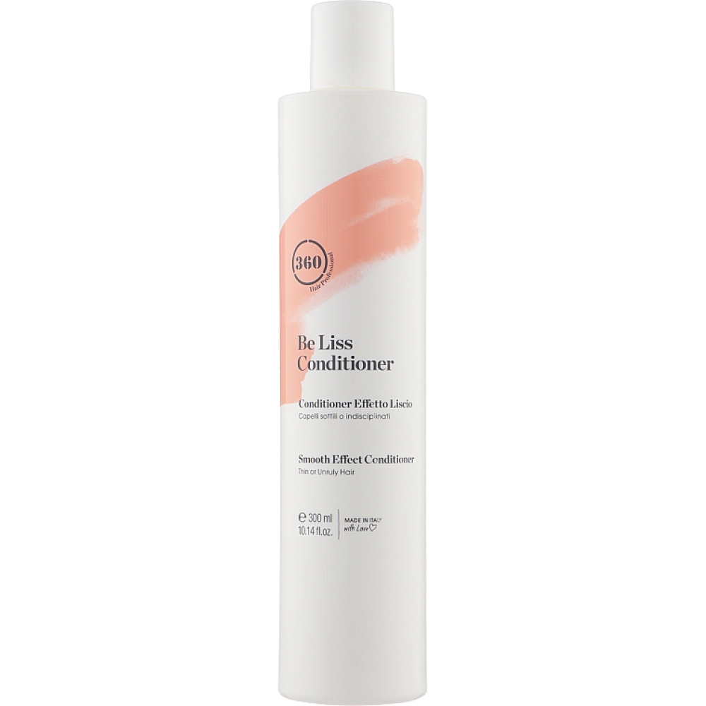 360 Кондиціонер з ефектом розгладження — дбайливий догляд для тонкого та неслухняного волосся, який допомагає миттєво розгладити кутикулу, зменшити пухнастість і надати локонам шовковистості, роблячи їх більш слухняними та блискучими без обтяження. Його живильна формула зволожує пасма по всій довжині, покращує еластичність, полегшує розчісування й укладку, створюючи доглянутий вигляд і комфортний стан волосся між миттями. Ідеальний для регулярного домашнього та професійного використання з тривалим ефектом гладкості й м’якості.