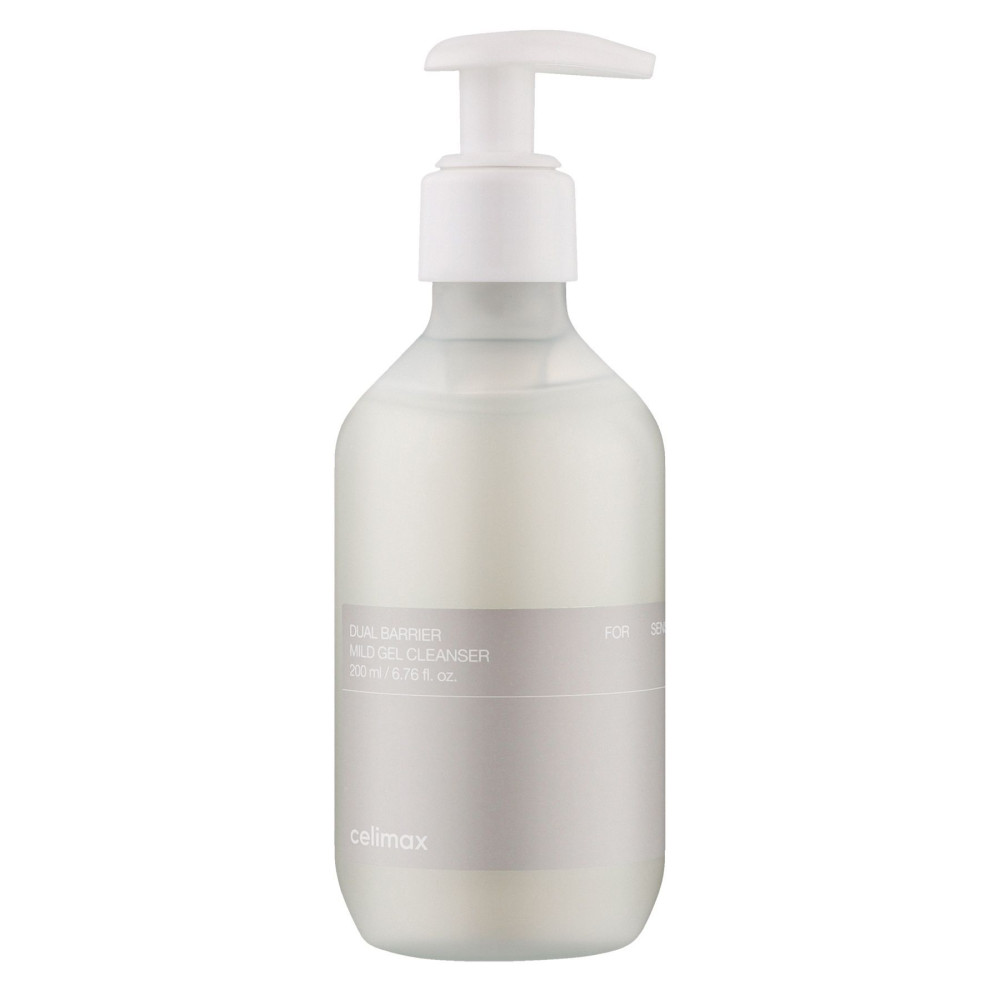 Ніжний гель для вмивання Celimax Dual Barrier Mild Gel Cleanser делікатно очищає шкіру від забруднень і надлишку себуму без відчуття стягнутості чи сухості, м’яка гель-пінка легко піниться та залишає шкіру свіжою і комфортною, формула спеціально розроблена для сухої та чутливої шкіри, підтримує її захисний бар’єр і рівень зволоження, комплекс із 5 церамідів, фітосфінгозин і холестерин сприяють відновленню ліпідного шару, зменшують сухість і заспокоюють шкіру, а кокамідопропіл бетаїн забезпечує ніжне очищення без подразнення, слабокислий pH 5.2 відповідає природному балансу шкіри та допомагає нейтралізувати вплив жорсткої води, гіпоалергенна формула підходить для щоденного використання, робить шкіру м’якою, гладкою та захищеною.