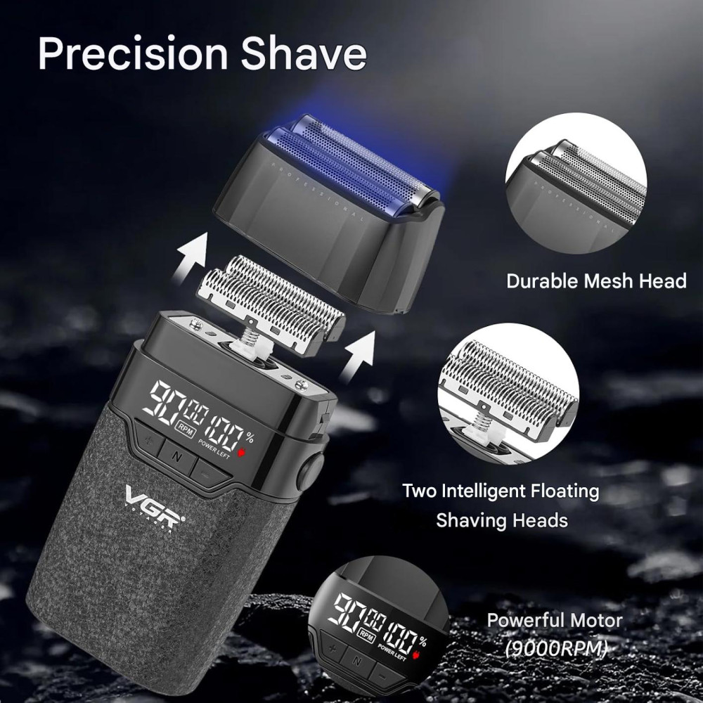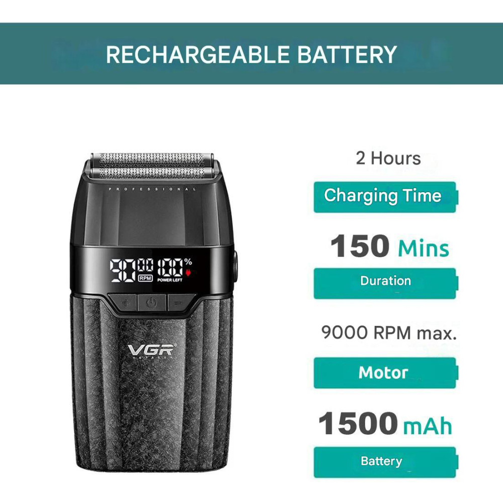 Шейвер VGR V-640S — має високошвидкісний двигун, що забезпечує до 9000 обертів за хвилину. У поєднанні з інноваційною системою подвійних лез бритва гарантує максимально чисте видалення навіть найжорсткіших волосків за один прохід, мінімізуючи ризик подразнення шкіри. Ви отримаєте ідеально гладку шкіру без зайвих зусиль.Переваги: Висока швидкість роботи — 9000 об/хв Подвійне лезо для більш чистого гоління Зручний LED-дисплей для контролю Стильний чорний дизайн Енергоефективність і довговічністьХарактеристики: Тип: чоловіча електробритва Максимальні оберти: 9000 RPM Дисплей: LED Час роботи: до 150 хвилин Час заряджання: близько 2 годин Тип заряджання: USB Вхід: 5V / 1A Акумулятор: 1500 mAh Розміри електробритви: 12 × 6 × 3 см Вага: 250 г