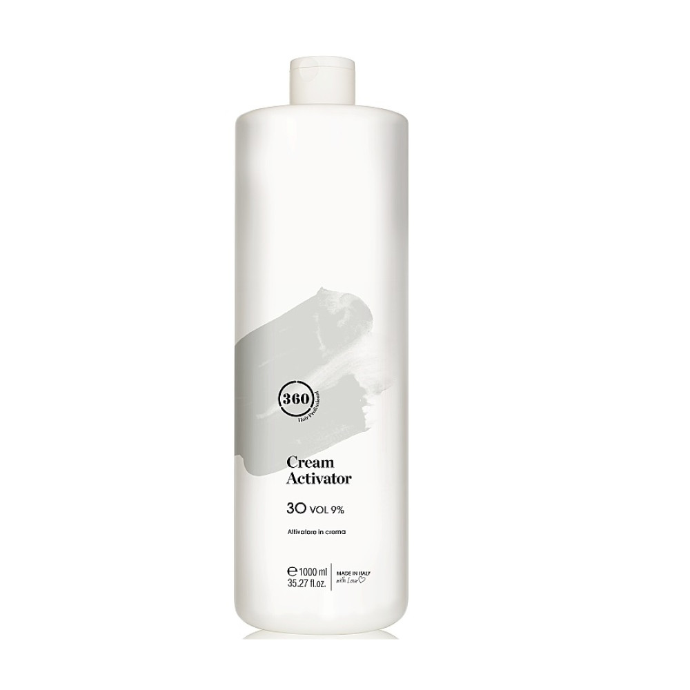 Окислювальна емульсія 360 Professional.Крем-активатор зручної кремової консистенції з кокосовою олією у складі.Має приємний цукерковий аромат для комфортної роботи.Не містить мінеральних олій та глютену.Пропорції змішування:Фарбування 1:1Тонування, освітлення 1:2Знебарвлення пудрою 1:1Об'єм: 1000 мл.
