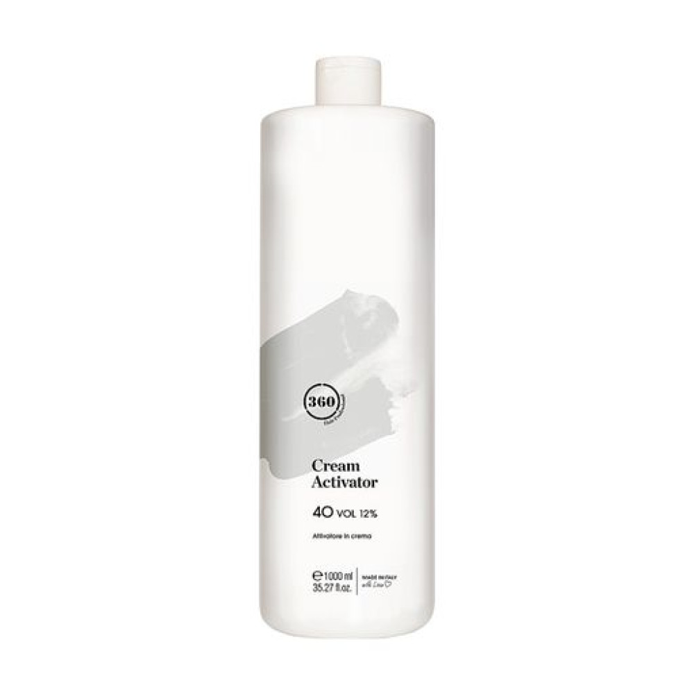 Окислювальна емульсія 360 Professional.Крем-активатор зручної кремової консистенції з кокосовою олією у складі.Має приємний цукерковий аромат для комфортної роботи.Не містить мінеральних олій та глютену.Пропорції змішування:Фарбування 1:1Тонування, освітлення 1:2Знебарвлення пудрою 1:1Об'єм: 1000 мл.