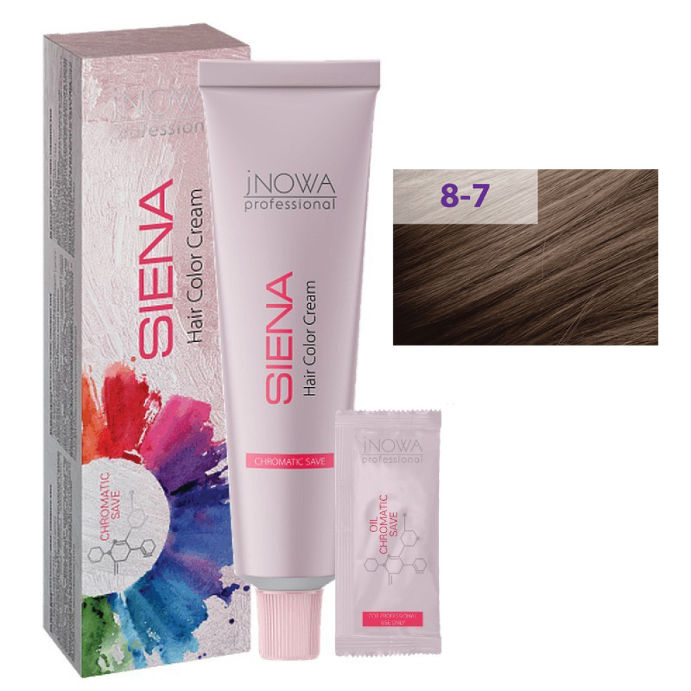 Професійна стійка аміачна крем-фарба Siena Chromatic Save у системі Save Color.Має систему ANTI GRAY SYSTEM, яка зафарбовує сивину без додаткових процедур. І майстри, і клієнти відзначають відмінний результат.У фарбнику присутній нейтралізатор запаху для комфортної роботи.Містить OIL CHROMATIC SAVE - це додатковий комплекс для шкіри голови та волосся для догляду під час фарбування, який додається до суміші.В цей комплекс входить:гідролізований кератин, олія зародків пшениці та олія вівса.Він не тільки не заважає процесу фарбування та проникненню пігменту у волосся, а навіть підвищує насиченість кольору.Основна гама відтінків працює з рівнем глибини тону (РГТ) від 2 до 10.Палітра 12-го рівня може висвітлювати на 2 рівні з 8-го натурального за допомогою 9% окислювача. Даним рядом можна робити інтенсивне або пастельне тонування.Палітра Special Blond дозволяє піднімати з 6 ргт на 4-5 рівнів.Відтінки Mix Tones використовуються як самостійні барвники і для створення нових кольорів.У комплект входить:- тюбик з крем-фарбою, 90 мл- 2 саше з OIL CHROMATIC SAVE, 3 г.Окисник не входить до комплекту, його можна придбати окремо.