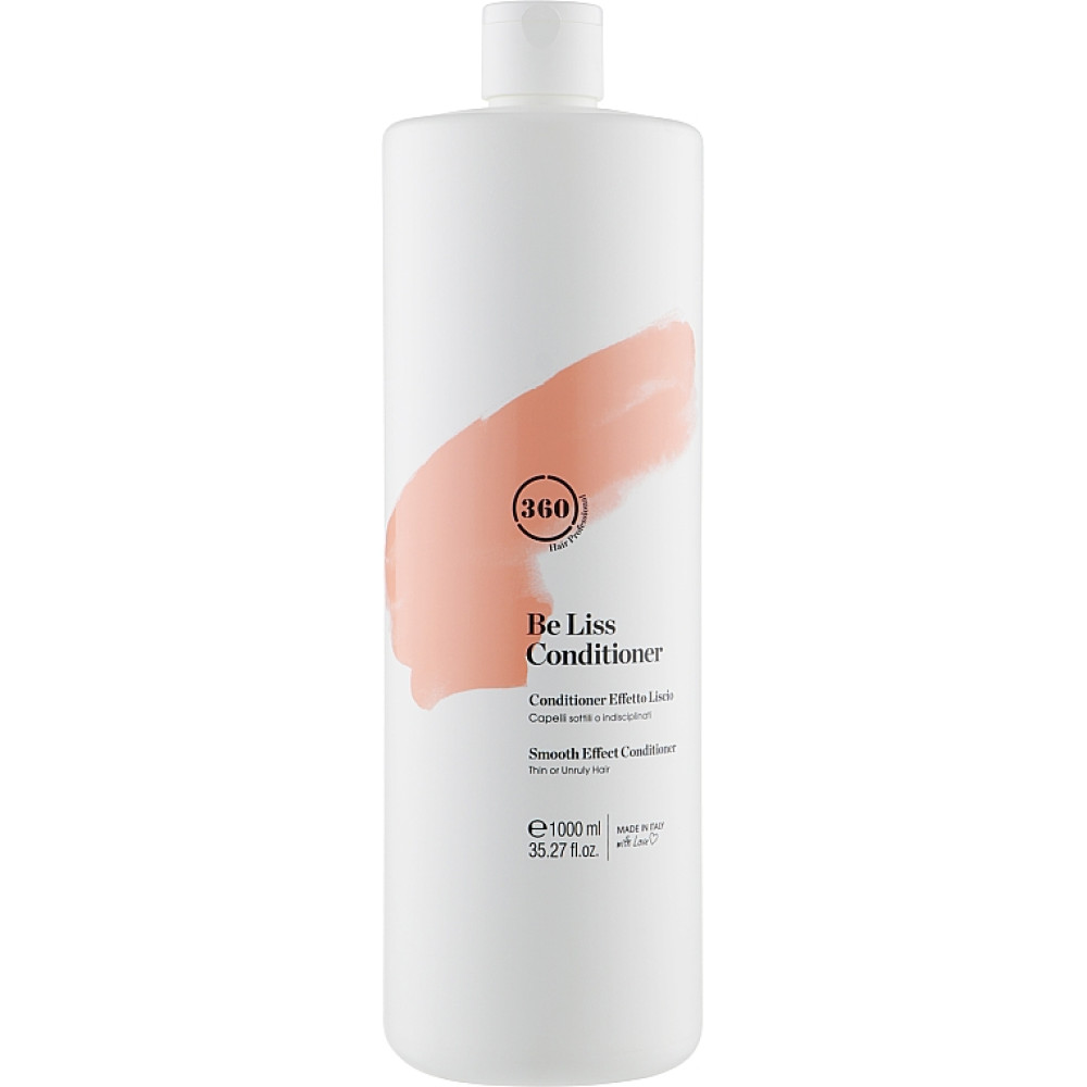 360 Кондиціонер з ефектом розгладження — дбайливий засіб для миттєвого пом’якшення й контролю тонкого або неслухняного волосся, який допомагає розгладити кутикулу, усунути пухнастість і надати локонам шовковистої текстури без обтяження. Його живильна формула зволожує волосся по всій довжині, покращує еластичність та полегшує розчісування й укладку, роблячи волосся більш слухняним, м’яким і блискучим. Кондиціонер ідеально підходить для регулярного домашнього та професійного догляду, підтримує доглянутий вигляд волосся між миттями і створює основу для комфортної та легкої укладки.