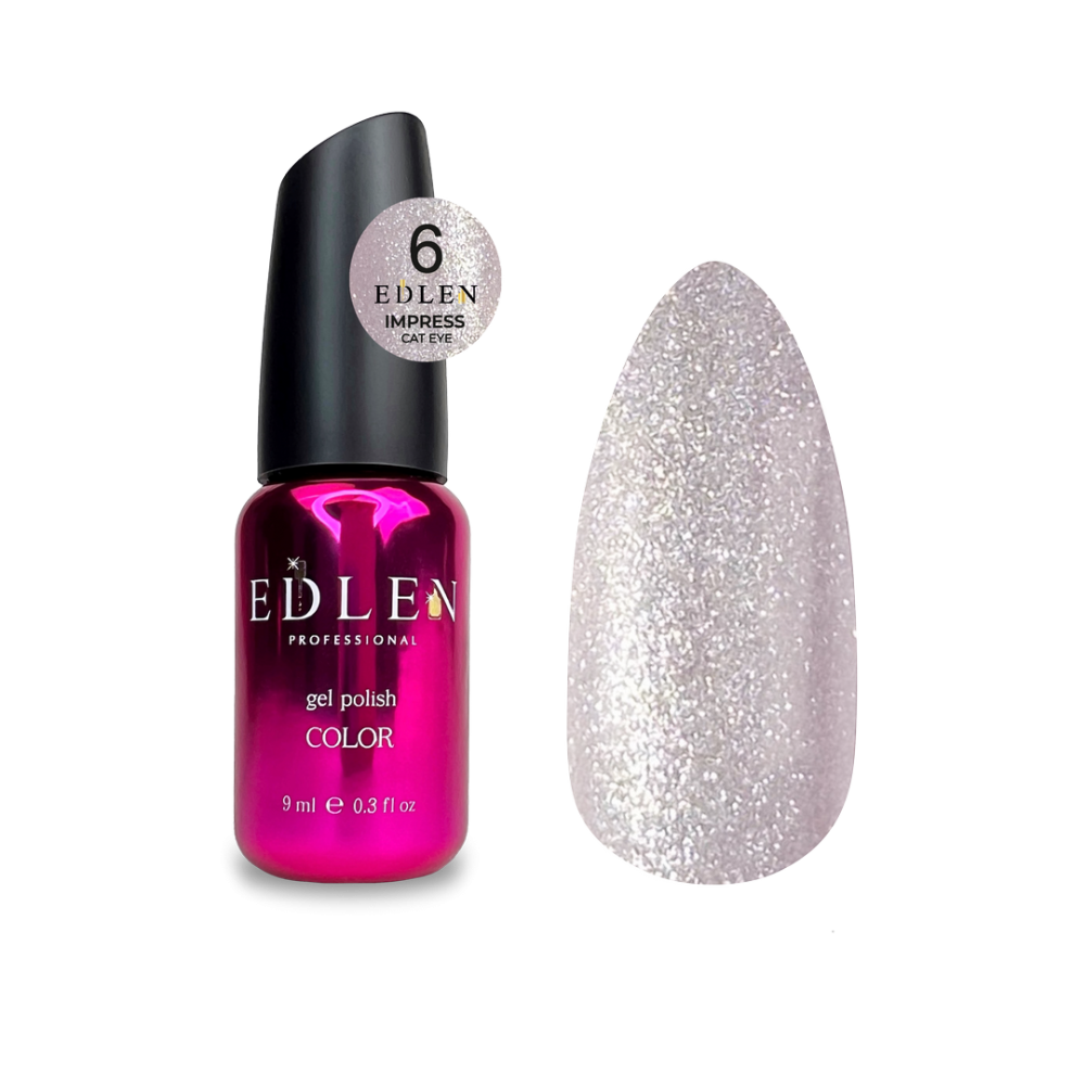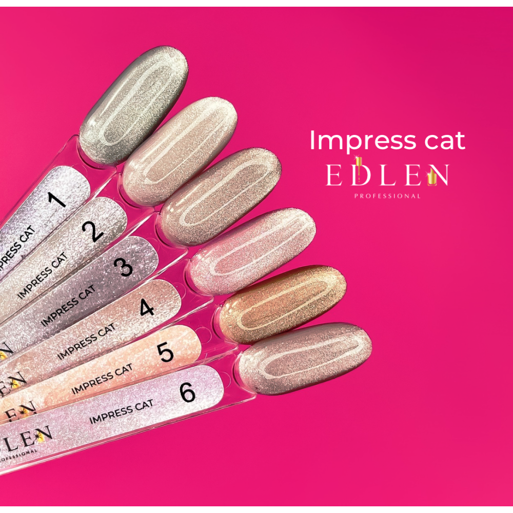 Impress cat Edlen - гель-лак котяче око із рефлексивним ефектом.Це кішки ніжних кольорів зі світловідбиваючими дрібними частинками. Після роботи магнітом вони просто нереально переливаються! А якщо ввімкнути спалах — очей не відвести!У чому їх особливість? Вони щільні і перекривають нігтик у один шар. Тут є ще одна перевага — магнітити їх потрібно лише один раз, тому перелив виглядає таким дорогим і глибоким (у кішок двошарових подвійне намагнічування лягає неідеально одне на одне і може збиватись блік) Характеристики Impress cat Edlen:• Суперсяючі нюдові відтінки• Щільні, перекриваються в один шар• Неймовірно переливаються із застосуванням магніту• Містять світловідбиваючі частинки• Середня консистенція• Чудове доповнення для креативних дизайнів Технологія нанесення Impress cat Edlen:Пограй із магнітом і спостерігай, як манікюр змінюється під різними кутами!
